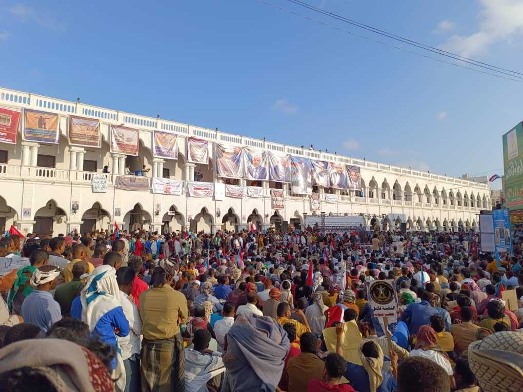 واحتشد الآلاف في مدينة المكلا مساء اليوم، في مهرجان دعا له الانتقالي لما قال إنه مساندة لـ"قوات النخبة الحضرمية"، وذلك رداً على محاولات لإدخال قوات درع الوطن المدعومة سعودياً إلى ساحل المحافظة، التي يعتبرها الانتقالي منطقة نفوذ خاصة.