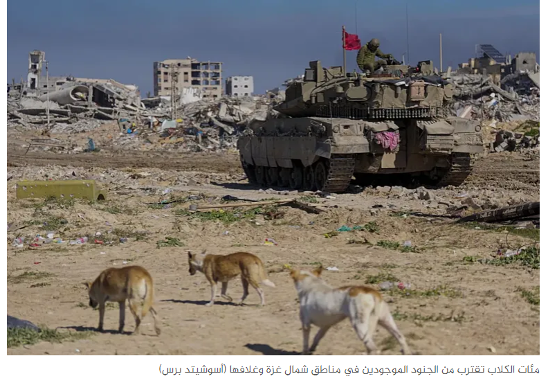 ووفقا لما أوردته هيئة البث الإسرائيلية الرسمية (كان)، فإن "مئات الكلاب تقترب من المقاتلين الموجودين في مناطق التجمع في المنطقة شمال غزة.. تزمجر وتكشف عن أسنانها وتحاول عض الجنود، حتى الآن تمكن الجنود من صدها ولم يصابوا".