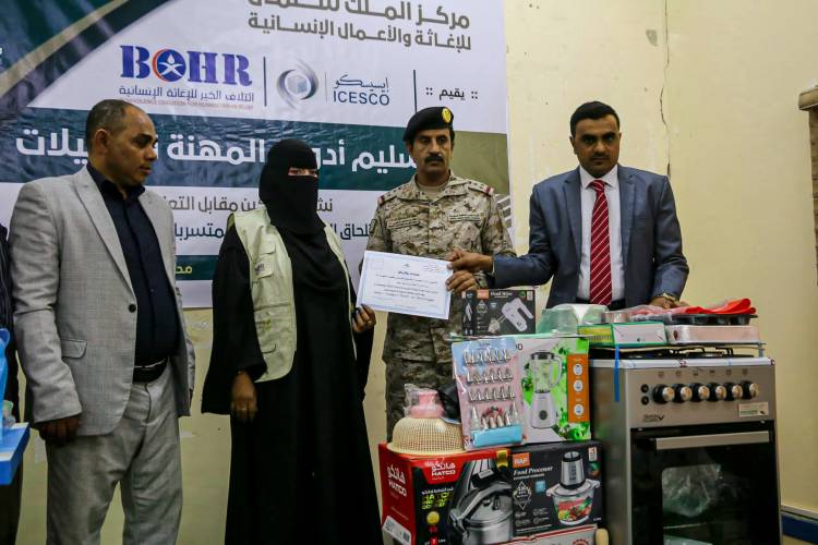 سلّم مركز الملك سلمان للإغاثة والأعمال الإنسانية، في محافظة أرخبيل سقطرى أدوات المهنة لمعيلات الأسر المستفيدات من نشاط " التمكين مقابل التعليم" ضمن مشروع استلحاق الفتيات المتسربات من التعليم في اليمن الذي ينفذه ائتلاف الخير للإغاثة بالشراكة مع منظمة الإيسيسكو.