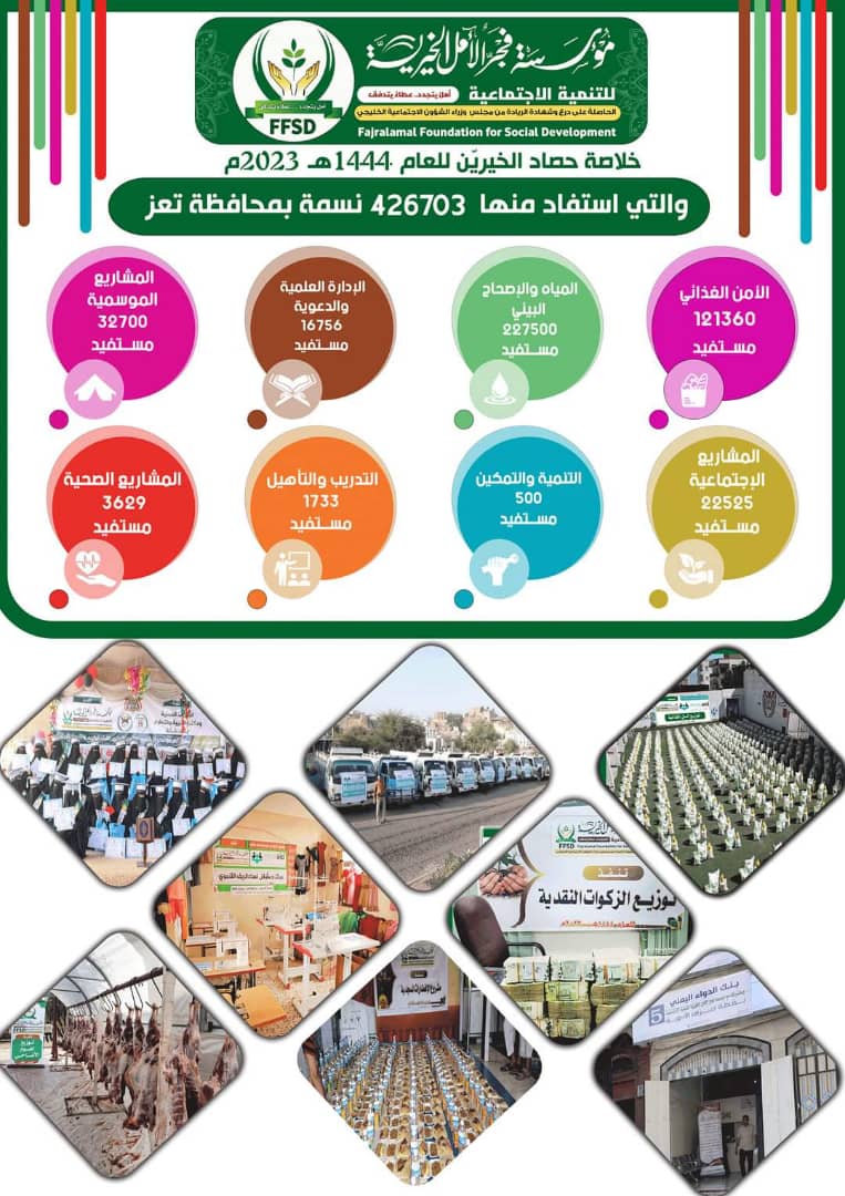 فجر الأمل : 400 الف مستفيد من مشاريعنا الخيرية خلال عام 2023في تعز