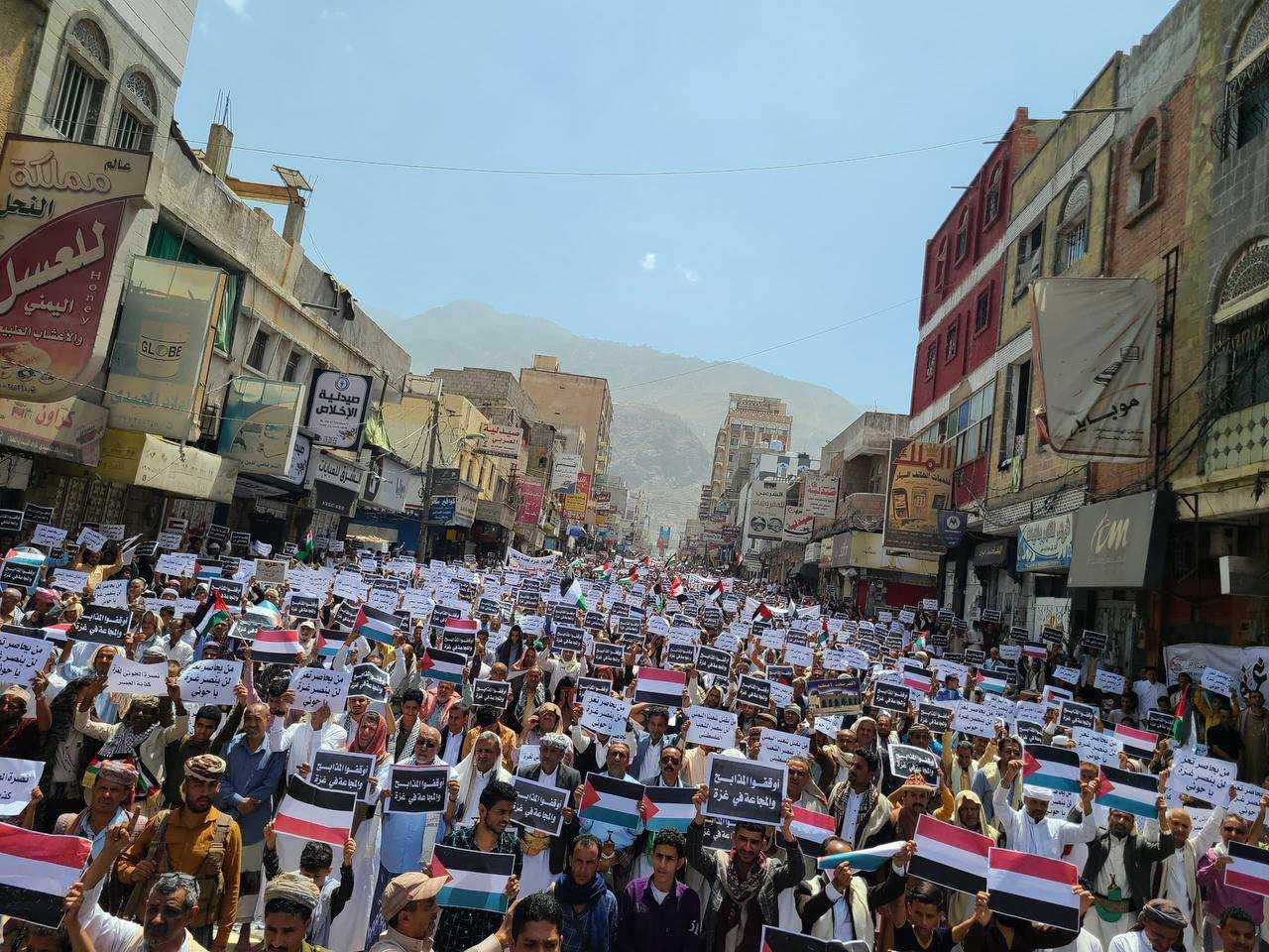 شهدت مدينة تعز اليوم الجمعة، تظاهرة شعبية حاشدة تضامنناً مع الشعب وتنديداً بحرب الإبادة التي تشنها قوات الاحتلال الإسرائيلي على قطاع غزة، والتجويع الممنهج بحق النازحين وسكان القطاع.