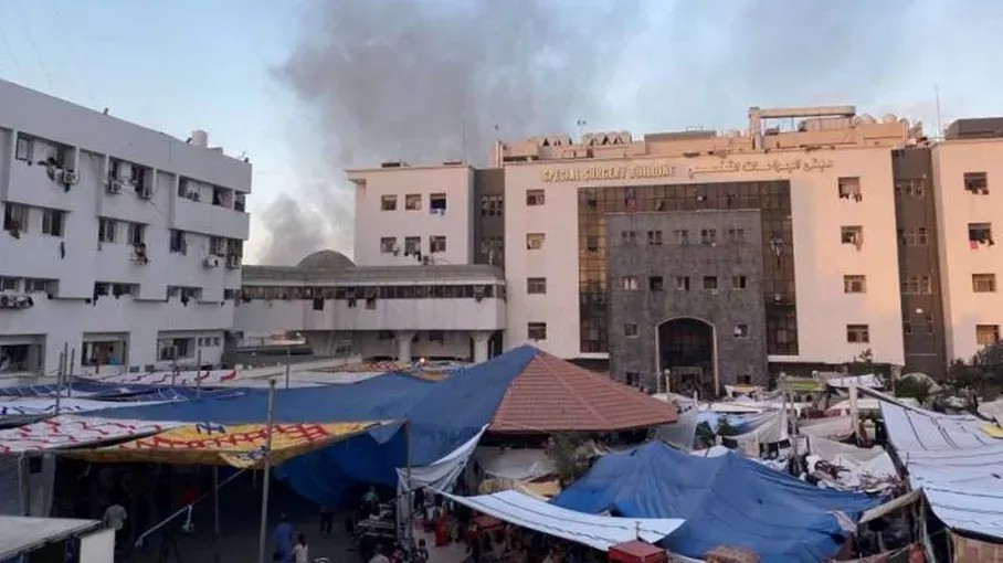 "المكتب الإعلامي" قال في تصريح صحفي نقلته وسائل إعلام فلسطينية "وصلتنا إفادات من داخل مجمع الشفاء الطبي، تشير إلى تهديد جيش الاحتلال للطواقم الطبية الموجودة داخل مباني المستشفى والنازحين".