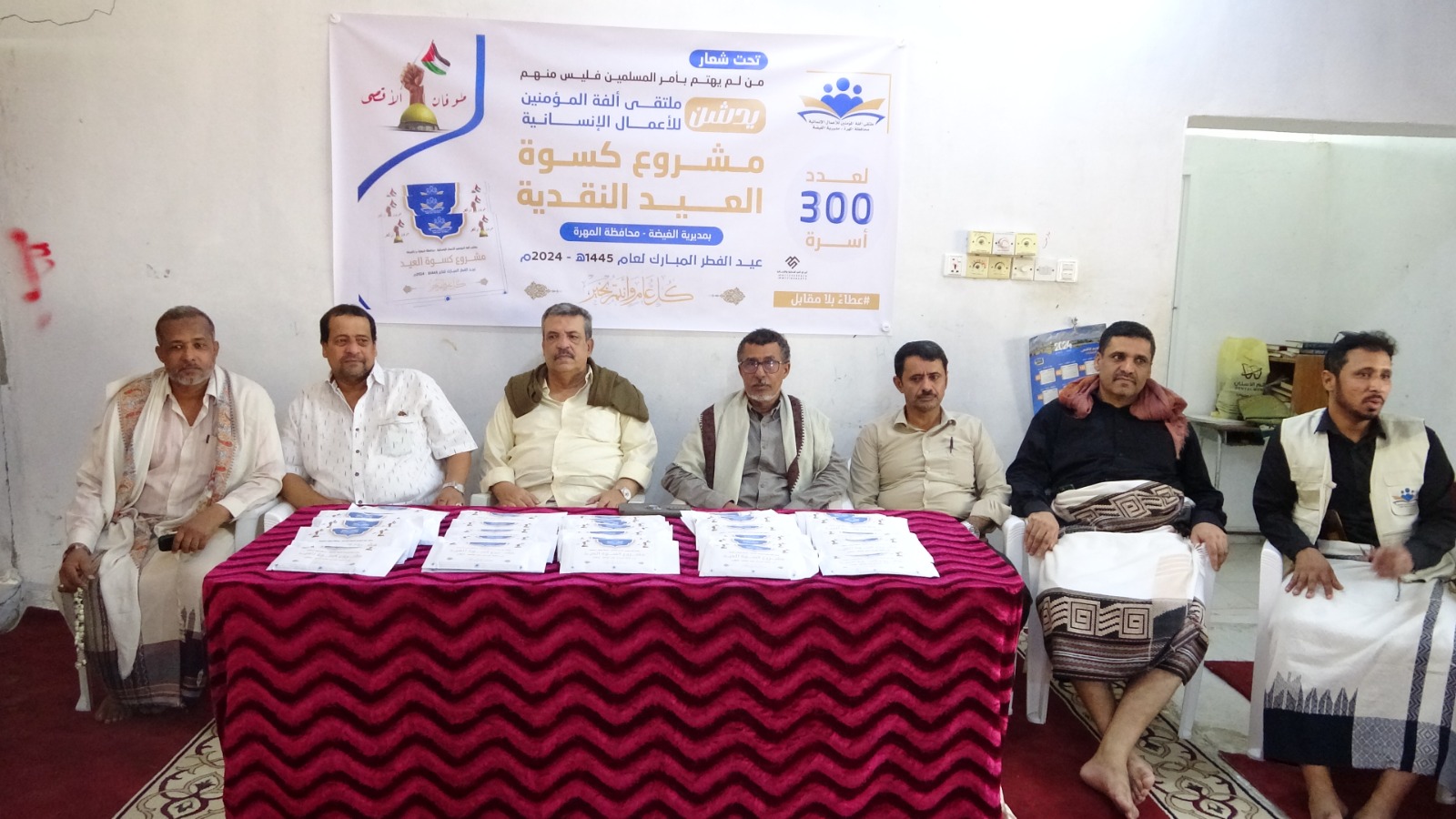 دشن ملتقى ألفة المؤمنين للأعمال الإنسانية اليوم بمديرية الغيضة مشروع توزيع كسوة العيد النقدية لعيد الفطر المبارك 1445ه، لعدد 300 مستهدفا" من الأسر المتعففة والأشد إحتياجا في مديرية الغيضة.