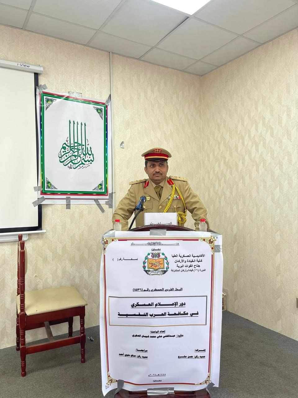 ولقيت رسالة العميد الركن عبدالغني شيبان الموسومة بعنوان "دور الإعلام العسكري في مكافحة الحرب النفسية"، بإشادة لجنة المناقشة لتميزها وأهميتها في المجال العسكري، معتبرة إياها إضافة نوعية للعلوم العسكرية.