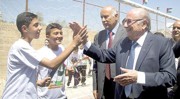وتابع: «هذا ليس من مصلحة أحد». وعد بلاتر خلال المؤتمر الصحافي مع الرجوب أن الوصول إلى مرحلة التصويت على مشروع قرار فلسطيني قدم إلى الجمعية العامة لتعليق عضوية إسرائيل في الفيفا، سيمثل «خسارة لكل الأطراف»، معربا عن أمله في تفادي الصدام وفصل الرياضة عن الاعتبارات السياسية.