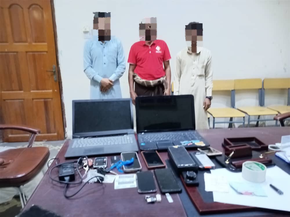 وتم ضبط المتهمين وبحوزتهم عدد إثنين أجهزة كمبيوتر لابتوب وثلاثة جوالات متنوعة وثلاثة فلاشات وآيباد وجهاز نت مودم يمن موبايل وحجزهم على ذمة القضية.