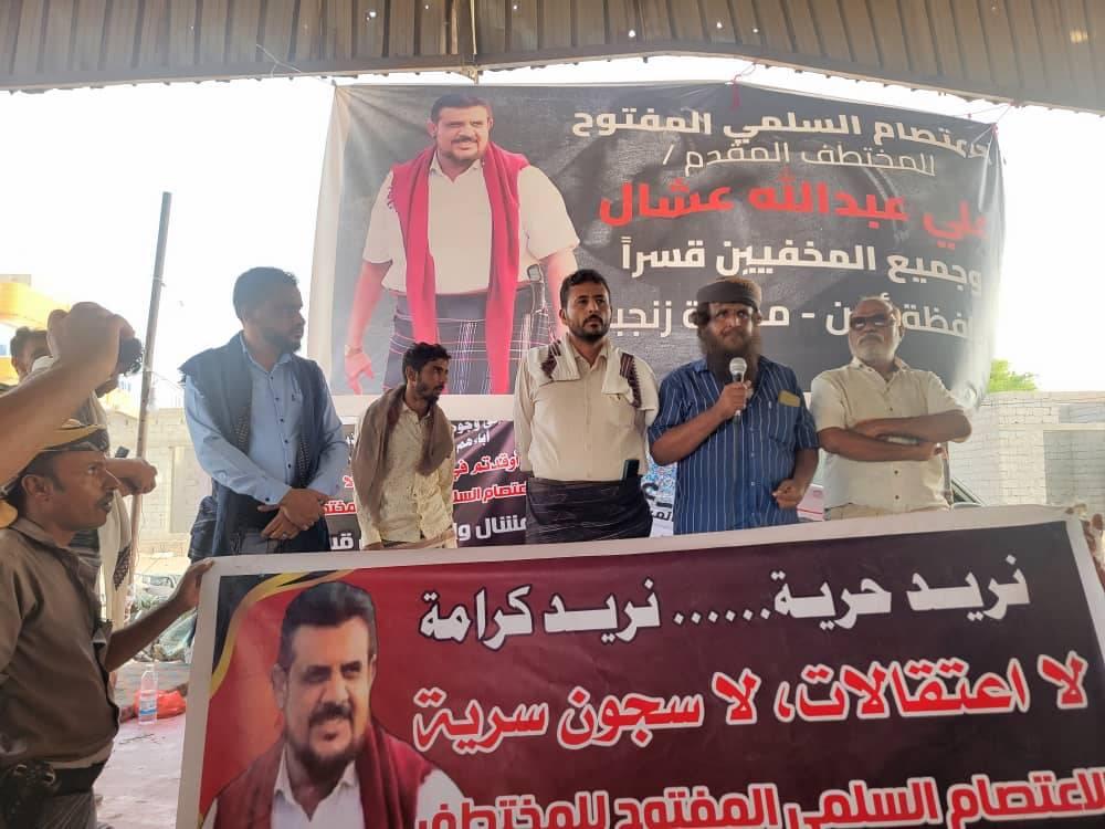 تستمر قبائل محافظة أبين منذ أيام بالتوافد إلى مخيم الاعتصام السلمي في مدينة زنجبار، حيث أعلنت عدد من القبائل انضمامها ودعمها لمطالب أبناء "الجعادنة" بالكشف عن مصير المقدم علي عشال الجعدني، المختطف منذ يونيو الماضي في العاصمة المؤقتة عدن.