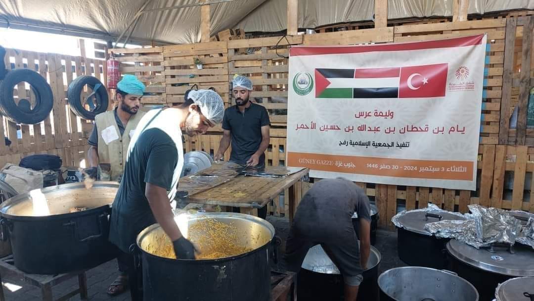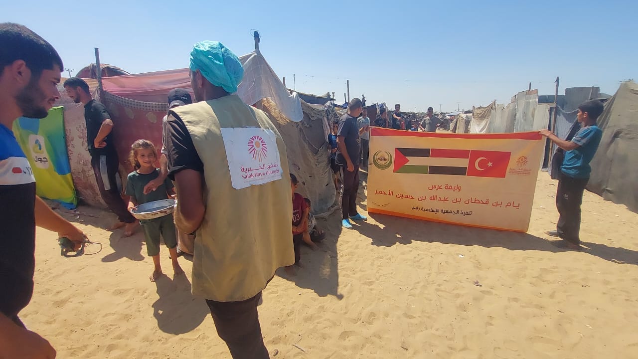 في خطوة ملهمة، أقامت أسرة الشيخ عبدالله بن حسين الأحمر، وليمة عرس أحد أبنائها في مدينة خان يونس جنوب قطاع غزة.