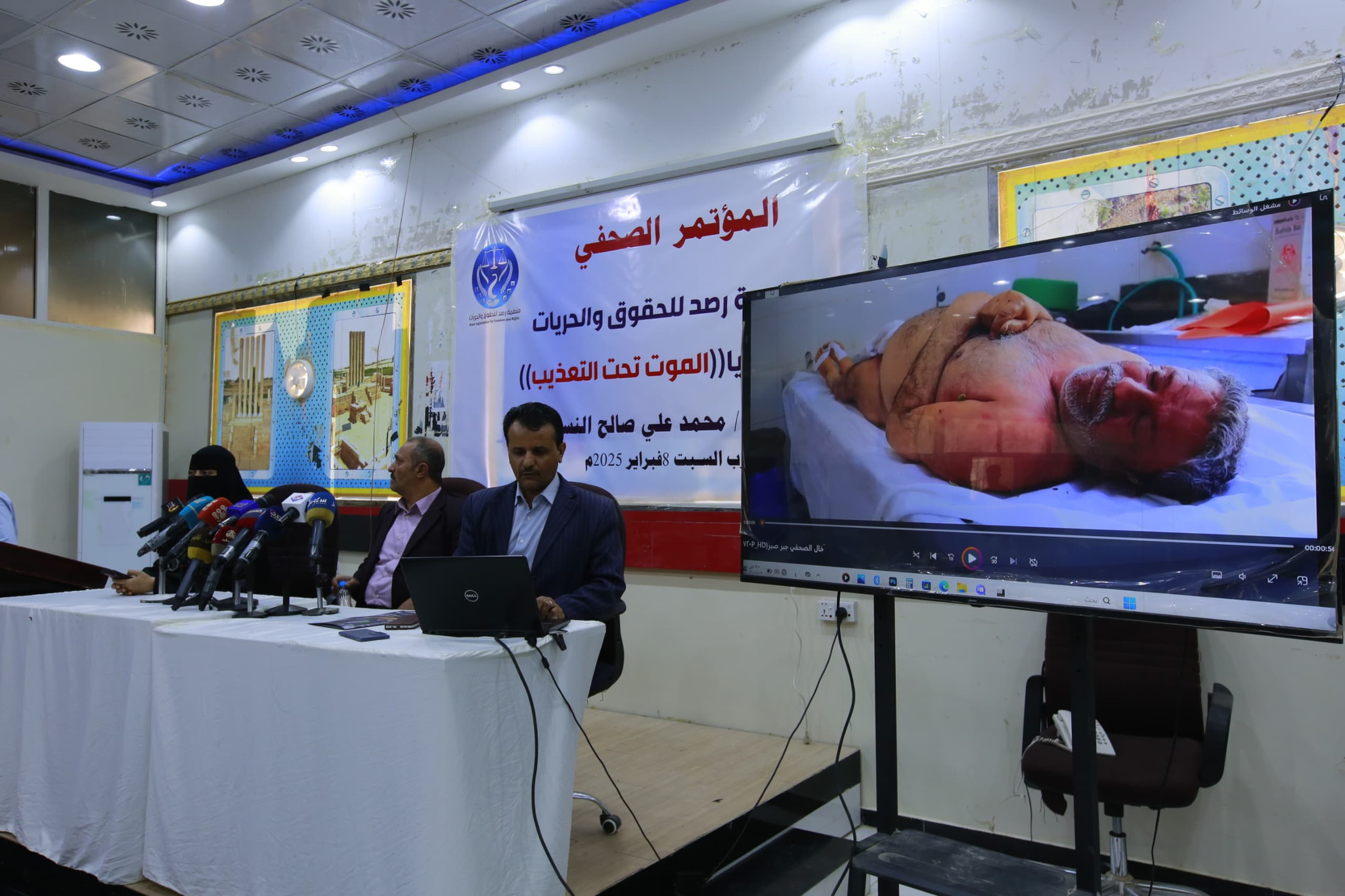 وفي المؤتمر الصحفي الذي نظمته منظمة "رصد" للحقوق والحريات تحت عنوان "الموت تحت التعذيب"، استعرضت المنظمة صورًا ومقاطع فيديو توضح آثار وصنوف التعذيب الوحشي الذي تعرض له الأسير من القوات الحكومية "محمد علي النسيم".