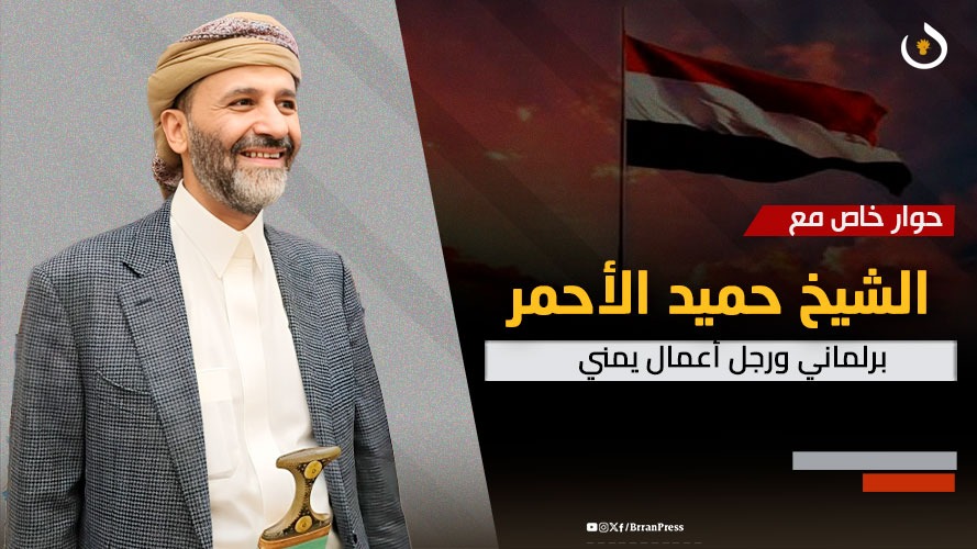 وفي حوار خاص أجراه معه "برّان برس"، تحدث الشيخ حميد الأحمر، في جزئه الأول، عن الواقع السياسي الحالي في اليمن، ورؤيته حول ثورة 11 فبراير في ذكراها الـ14، وعن الآراء التي تحمّلها مسؤولية ما حدث في البلاد منذ الانقلاب جماعة الحوثي المصنفة دوليا في قوائم الإرهاب في 21 سبتمبر/أيلول 2014م، وحتى اليوم.