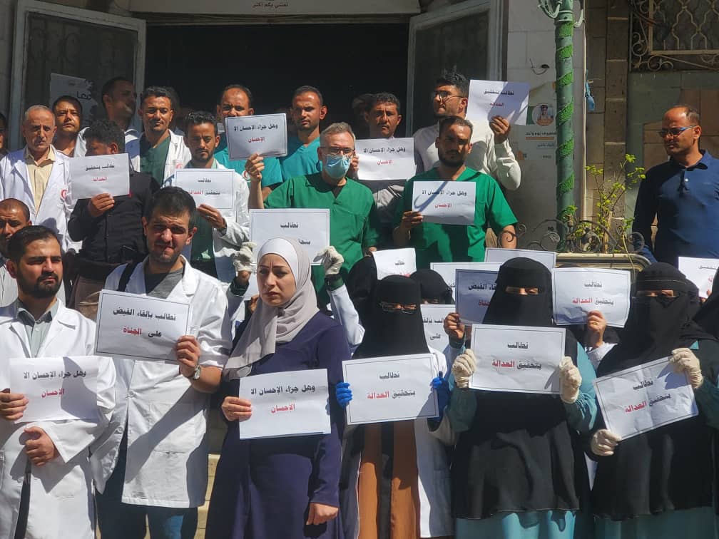 نفذ أطباء في محافظة تعز (جنوب غرب اليمن)، الخميس 20 فبراير/ شباط، وقفة تضامنية مع طبيب من الجنسية السورية، تعرض للاعتداء من مسلح قبل أيام، حيث أصيب بطلق ناري في فخذه.