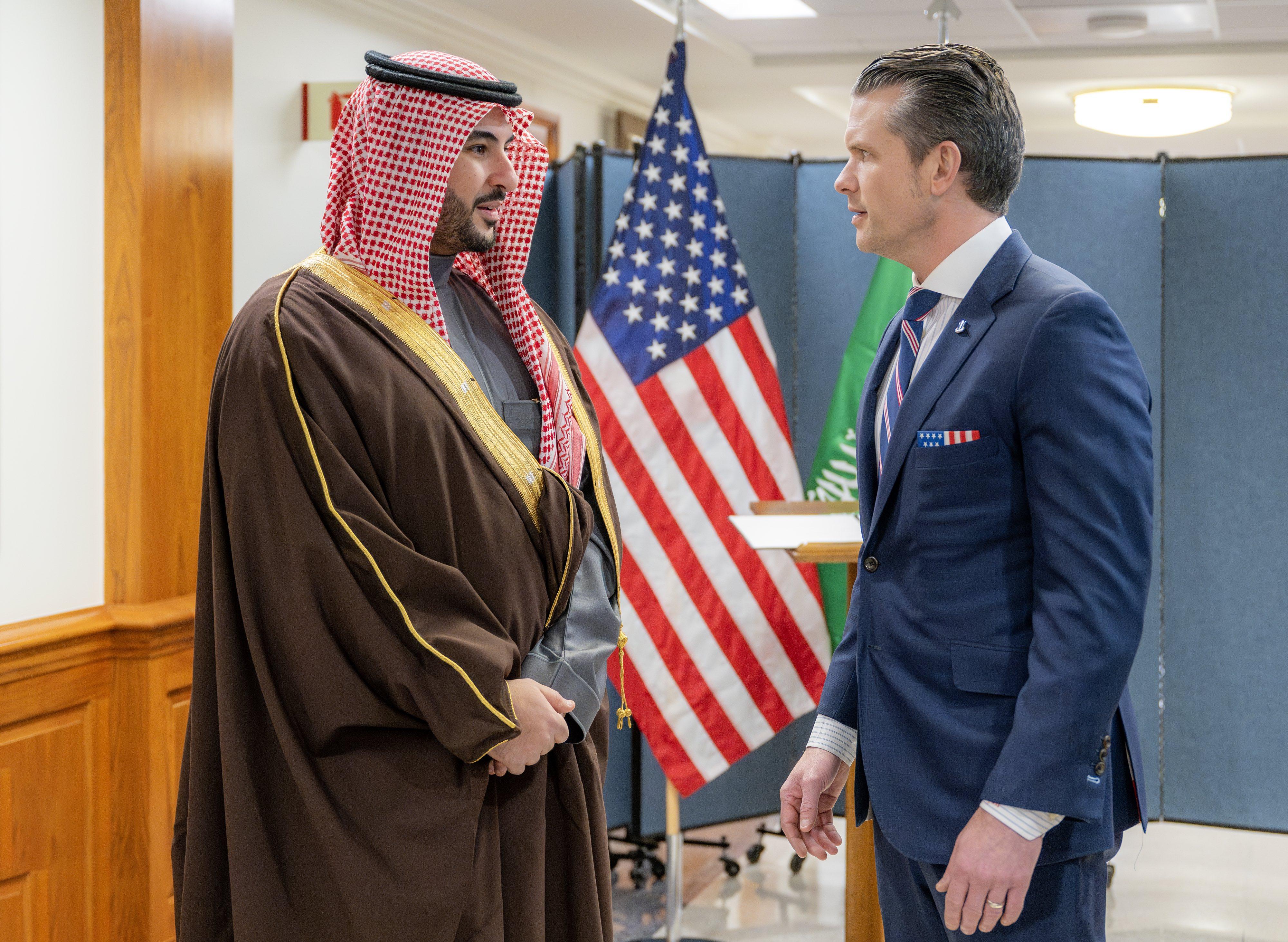 وخلال استقباله نظيره السعودي، أكد وزير الدفاع الأميركي، بيت هيغسيث، أن المملكة العربية السعودية شريك عظيم للولايات المتحدة، مشيرًا إلى أن العلاقة بين البلدين تمثل مركز ثقل في منطقة مضطربة.