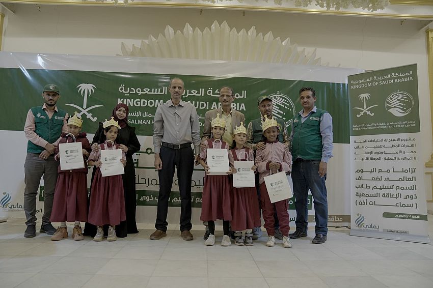 وزع مركز الملك سلمان للإغاثة والأعمال الإنسانية، اليوم، 135 سماعة أُذن طبية لطلاب ذوي الإعاقة السمعية في محافظة لحج، تزامناً مع اليوم العالمي للسمع.