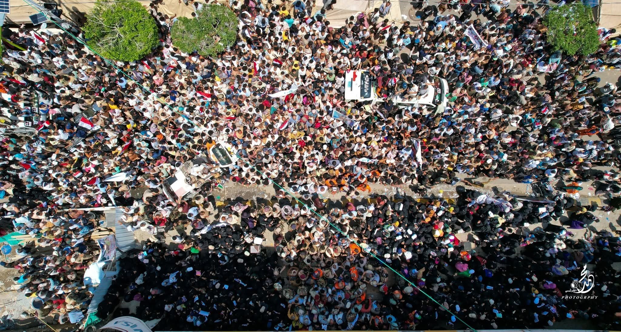 وتدفقت حشود غفيرة من مختلف مديريات المدينة والريف إلى شارع جمال وسط المدينة، حيث احتشد المتظاهرون أمام مبنى السلطة المحلية وإدارة الأمن، في مسيرة احتجاجية رفعوا خلالها لافتات تندد بالجريمة، ورددوا هتافات تطالب بوقف سطوة العصابات المسلحة ومحاسبة المتورطين.