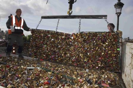وأضاف "إنها تفسد جماليات الجسر وضارة للبناء ويمكن أن تسبب حوادث" مشيرا إلى ان جزءا واحدا من السور على الأقل انهار بالفعل بسبب ثقل الوزن مما يشكل خطرا محتملا على الملاحة في نهر السين اسفله.