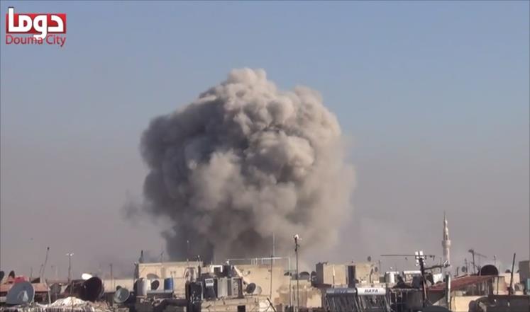 وقالت شبكة سوريا مباشر إن طيران النظام الحربي شنّ عشرات الغارات على مدن وبلدات الغوطة الشرقية، وتسببت الغارات في سقوط العشرات بين قتيل وجريح، حيث تعرضت مدينة دوما وحدها لأكثر من ثلاثين غارة جوية.