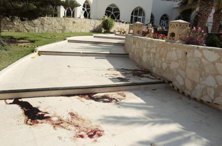 وتخفى مسلح تونسي في زي سائح وفتح النار من بندقية كان يخفيها في مظلة فقتل أشخاصا وهم يسترخون على الشاطيء وحمام سباحة. وقتلته الشرطة بالرصاص.