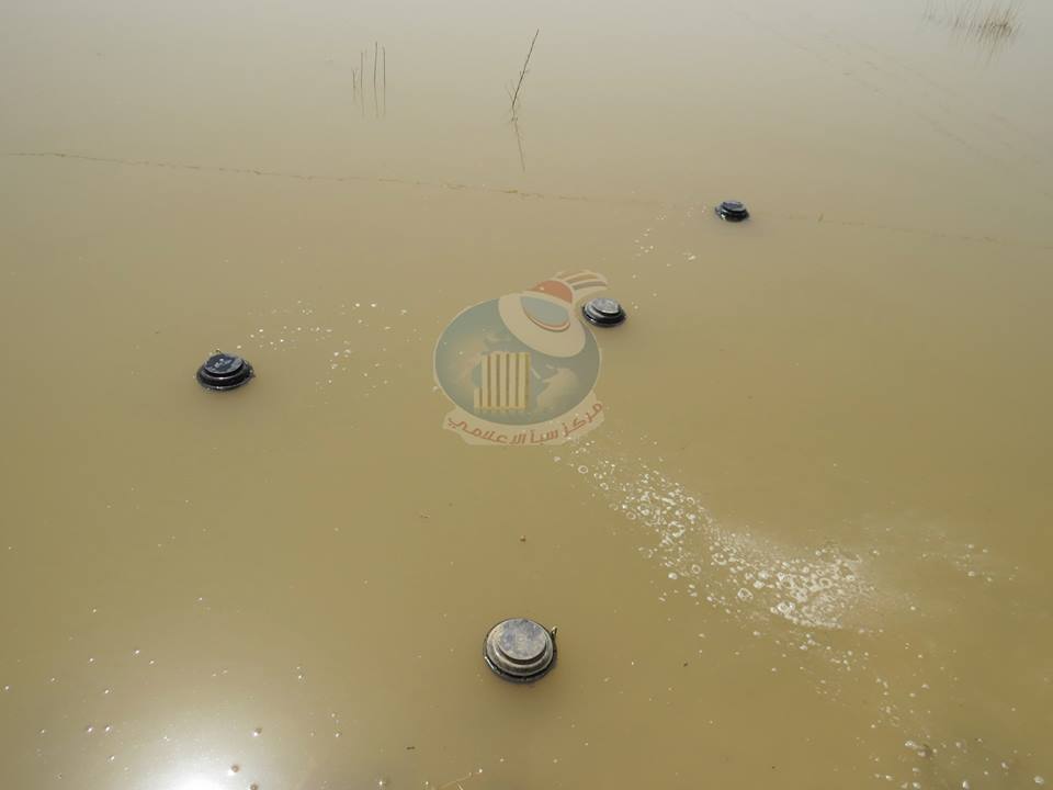 عثر سكان منطقة الجدعان على الغام ومتفجرات في مياه السيول .