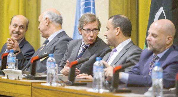 سلمت أمس بعثة الأمم المتحدة لدى ليبيا طرفي المفاوضات الدائرة في مدينة جنيف السويسرية الملاحق الخاصة باتفاق تشكيل حكومة وفاق وطني، بالتزامن مع ظهور حراك يدعو لإنشاء مجلس عسكري بقيادة الفريق خليفة حفتر القائد العام للجيش الليبي في حالة فشل المفاوضات، بينما تراجع رئيس الحكومة الانتقالية عبد الله الثني عن استقالة مفاجئة تقدم بها على الهواء مباشرة خلال مقابلة تلفزيونية.