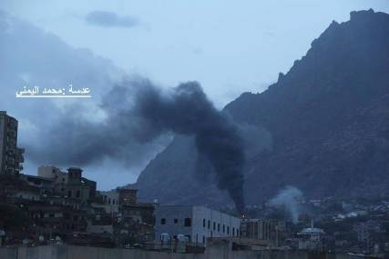 وأكد أن القصف طال مؤسسة الجمهورية للنشر والصحافة في حي الجحملية وحارة السعيد وذلك من مواقع تمركز قوات الحوثيين وصالح في الحوبان.
