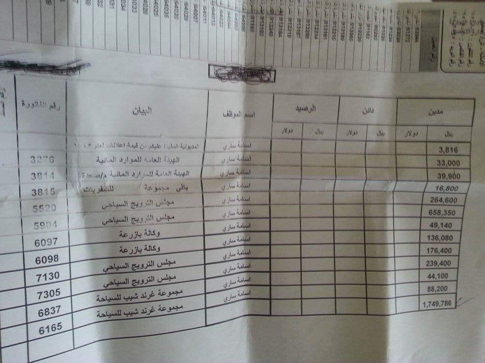 كما تؤكد وثائق أخرى مديونية أسامة ساري للمؤسسة مبلغ مليوني ريال قيمة فواتير طباعة لصحيفة المسار التي يرأس ساري تحريرها وقد امتنع أيضاً عن سداد هذه المديونية التي عليه لصالح المؤسسة التي تعاني وموظفوها من ضائقة مالية كبيرة وعدم تمكنها من صرف مستحقات العاملين فيها لما يقارب عشرة أشهر.