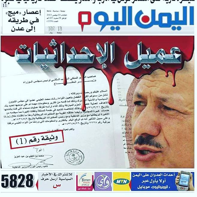 وقال في تصريح بثته قناة «اليمن اليوم»، المملوكة له إن العليمي من العملاء الذين أرسلوا الإحداثيات للعدوان بالمعسكرات ومؤسسات الجيش والدولة، وهو عميل قديم».