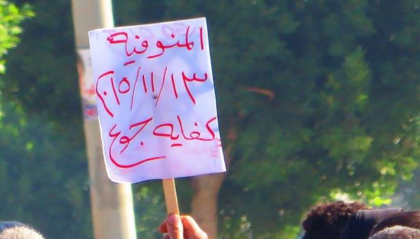 ونظم أهالي مدينة السادات بالمنوفية، وسط دلتا مصر، مسيرة صباحية جابت شوارع المدينة الرئيسية، حاملين لافتات "كفاية جوع"، مطالبين بوقف الانتهاكات التى تمارس ضد مناهضي الانقلاب العسكري، من خطف وتصفية جسدية وتعذيب في السجون.