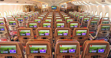 وقالت الشركة الإماراتية، إن الدرجة الاقتصادية زودت بعدد من المقاعد المريحة والواسعة التى تحافظ على المسافة بين الراكبين ولا تسبب الضيق والألم والإزعاج، كما سيمكن للراكبين قضاء الوقت من خلال مشاهدة الأفلام أو التليفزيون عبر واحدة من أكبر الشاشات الترفيهية.