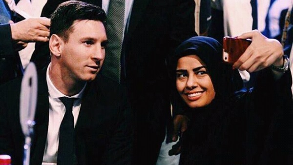التقطت الإعلامية اليمنية أمل إسماعيل صورة مع النجم الأرجنتيني ليونيل ميسي خلال مؤتمر دبي الرياضي العاشر.