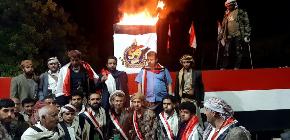 أوقدت شعلة السادس والعشرين من سبتمبر في ذكراها الـ 59 في منزل الراحل الشيخ عبدالله بن حسين الأحمر.