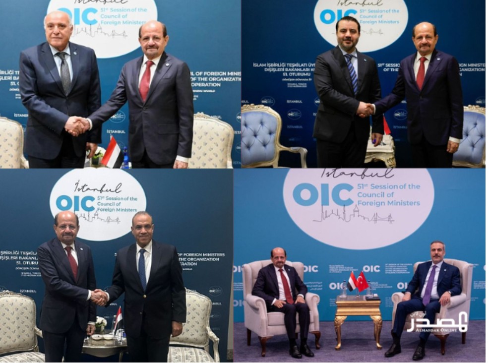 بحث وزير الخارجية وشؤون المغتربين، الدكتور شائع الزنداني، يوم الأحد، مع نظرائه من تركيا هاكان فيدان، ومن سوريا أسعد الشيباني، ومن مصر بدر عبد العاطي، ومن الجزائر أحمد عطاف، العلاقات الثنائية والتطورات الإقليمية، وذلك على هامش اجتماعات منظمة التعاون الإسلامي المنعقدة في مدينة إسطنبول التركية.