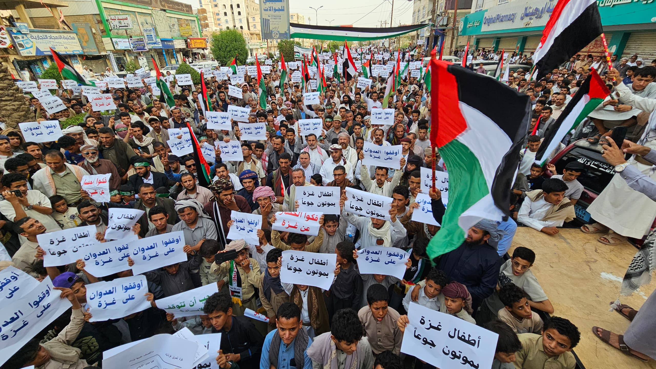 وتدفقت جموع المواطنين إلى ساحة التظاهرة من مختلف الفئات، رافعين لافتات تستنكر العدوان الإسرائيلي وتدين الصمت الدولي والتخاذل العربي الرسمي، فيما تعالت الهتافات المطالبة بتحرك إنساني عاجل لوقف المجازر وإغاثة أكثر من مليوني إنسان محاصر داخل غزة.