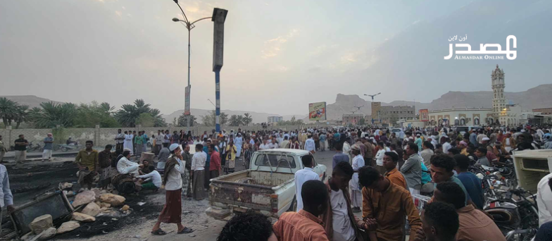 وأفاد مراسل "المصدر أونلاين" أن عشرات الشاحنات المحمّلة بالمواد التجارية توقفت عند المدخل الرسمي لمدينة تريم، تزامناً مع تصاعد الاحتجاجات، في مؤشر على اتساع رقعة الغضب الشعبي.