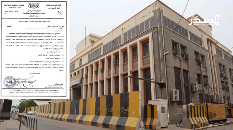 وجاء في تعميم موجَّه من وكيل محافظ البنك المركزي في عدن إلى البنوك العاملة في الجمهورية، بتاريخ اليوم الأحد، أنه ولما فيه الصالح العام: "يتم الالتزام بتنفيذ الحوالات الشخصية وعمليات بيع العملة الأجنبية للأغراض الشخصية (مصاريف دراسة وعلاج) بسقف أعلى لا يتجاوز خمسة آلاف دولار فقط، على أن يقوم البنك ببذل العناية المهنية الواجبة لضمان عدم تجزئة الحوالات أو تكرار عملية البيع، واستيفاء الوثائق والمستندات المؤيدة للغرض".