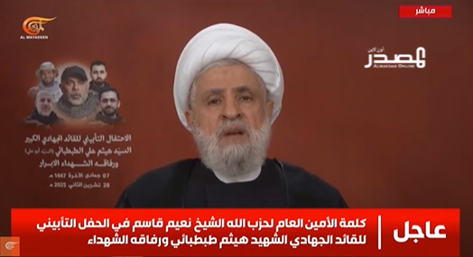 قال الأمين العام لحزب الله نعيم قاسم، اليوم الجمعة، إن القيادي في مليشيا الحزب هيثم الطبطبائي قضى في اليمن تسع سنوات في تدريب وإعداد القوات التابعة للحوثيين.